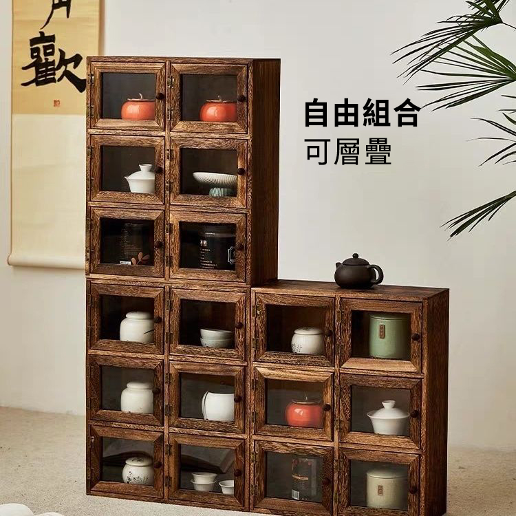 「純手工匠製」選用重燒桐木打造,防潮抗菌、質威溫潤、紋理细膩,實木茶具收納櫃!