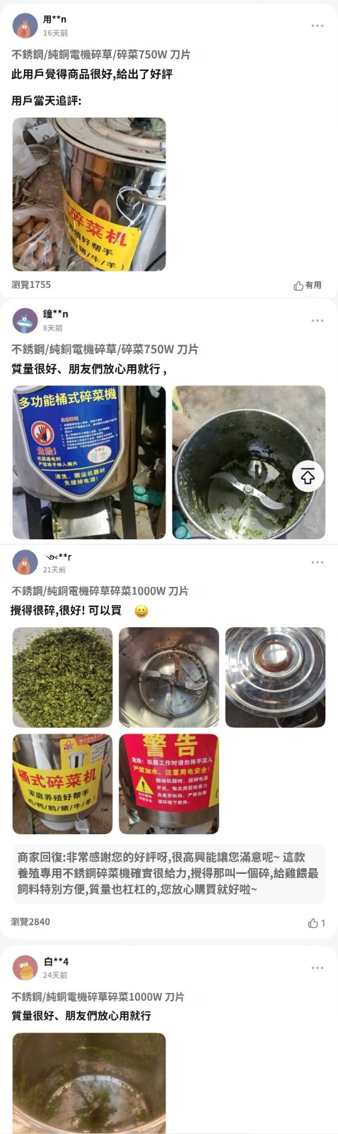 2分鐘前【養殖好幫手】多功能碎菜機,碎菜只需1秒!!!廠家直銷,貨到付款!量大優惠! - 800W不鏽鋼台式碎菜機--NT$3590