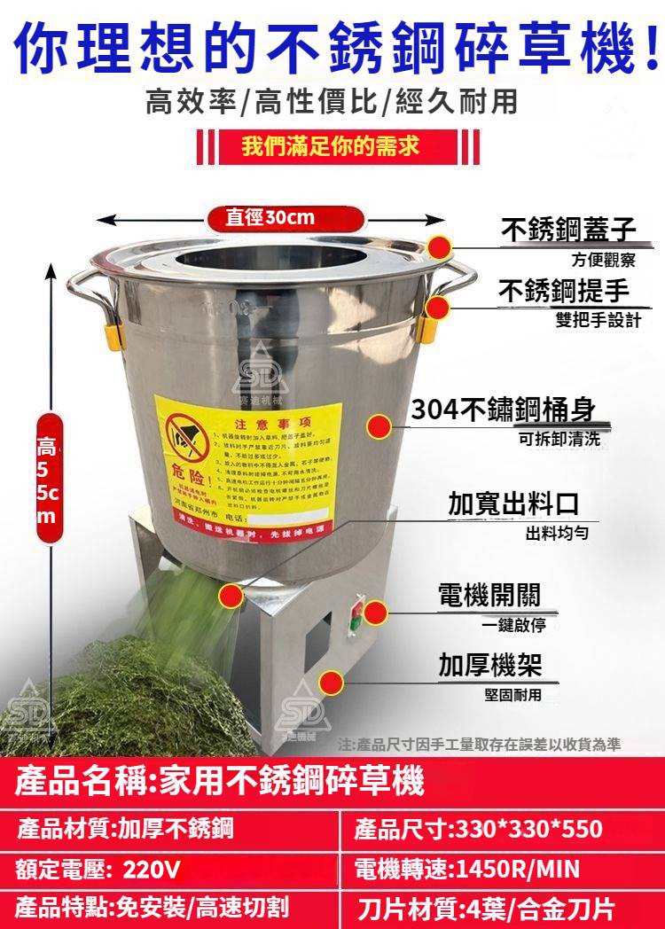 2分鐘前【養殖好幫手】多功能碎菜機,碎菜只需1秒!!!廠家直銷,貨到付款!量大優惠! - 600W不鏽鋼台式碎菜機--NT$2990
