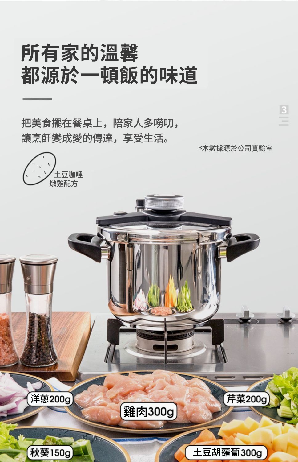 7分鐘前德國進口304不鏽鋼壓力鍋|燃氣電磁爐通用|安全升級限壓閥|燉肉煮飯熬粥一鍋搞定 - 升級加厚 6L【適合1-4人使用】304不鏽鋼壓力鍋 NT$2680