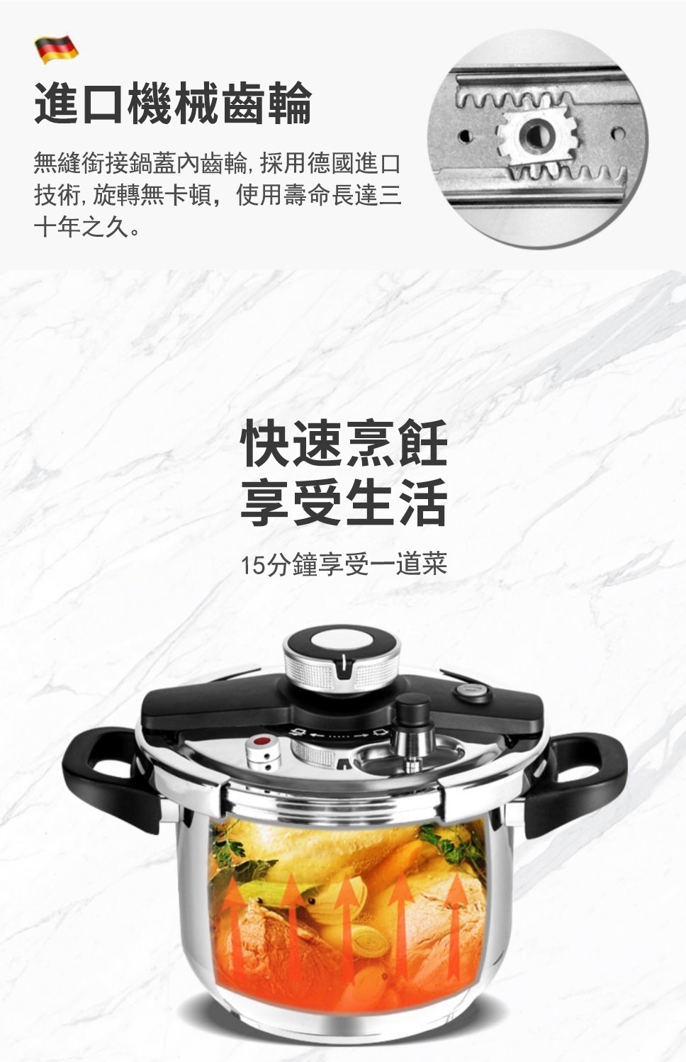 台灣之光【德國精品】304不鏽鋼壓力鍋 煮飯/熬粥/炖肉 自動限壓閥排氣保護安全防爆 耐用20年不壞 不滿意包退換