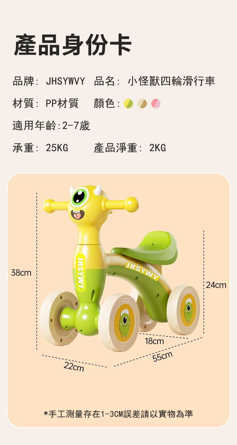 2分鐘前整條街最靚的寶!【JHSYWY】1-3歲兒童平衡車,BMSI專業認證,升級防翻設計,自帶燈光音樂+泡泡機 - 基礎款--NT$1098