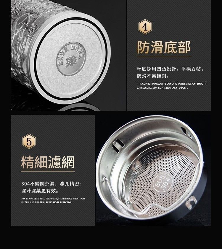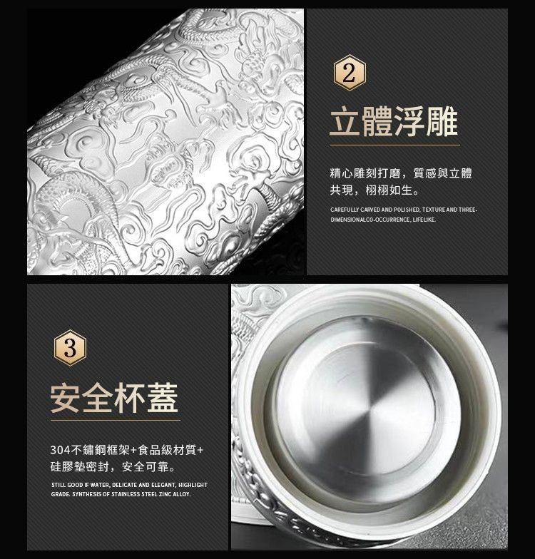 999足銀內膽 純手工浮雕設計 九龍纏繞杯身