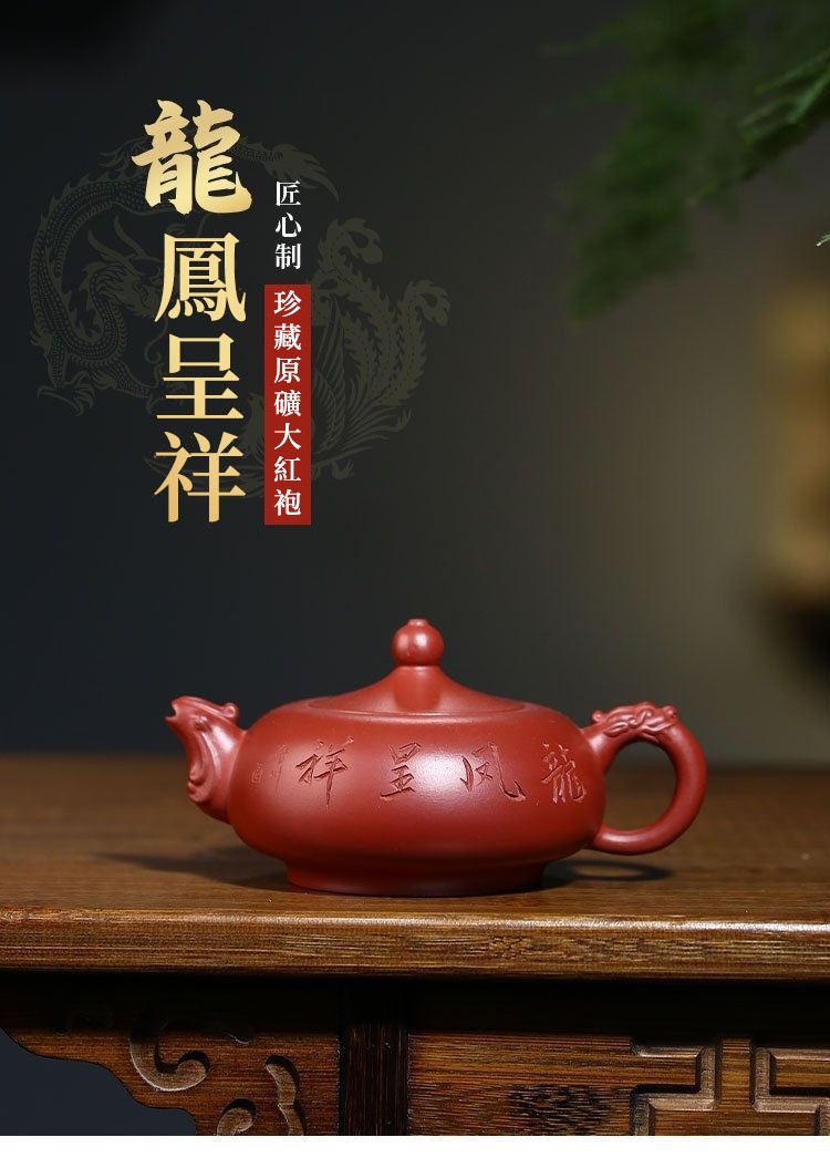 15分鐘前正宗宜興紫砂 ❘ 珍藏原礦大紅袍顧景舟純手工龍鳳呈祥紫砂壺230ml - 一泡而紅 / 龍鳳呈祥 / 禮盒包裝