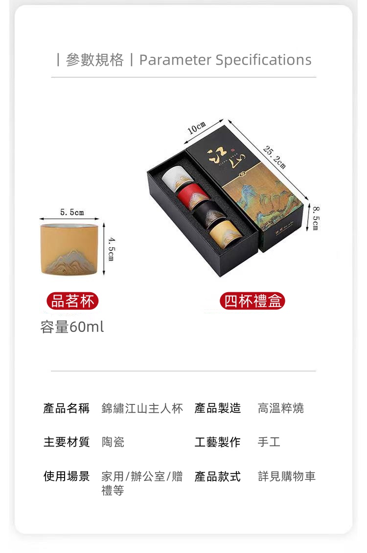 半小時前【陶作坊再造支持募資活動】台湾陶藝大師林榮國封窯之作丨錦繡江山陶瓷茶具組,杯側繪有錦繡江山圖,寓意“背有靠山、前程似錦”祝福每一個客人“事業穩固,財源廣進” - 【好物分享送禮】封窯之極.林榮國大師珍藏茶具組 2入組NT$1480