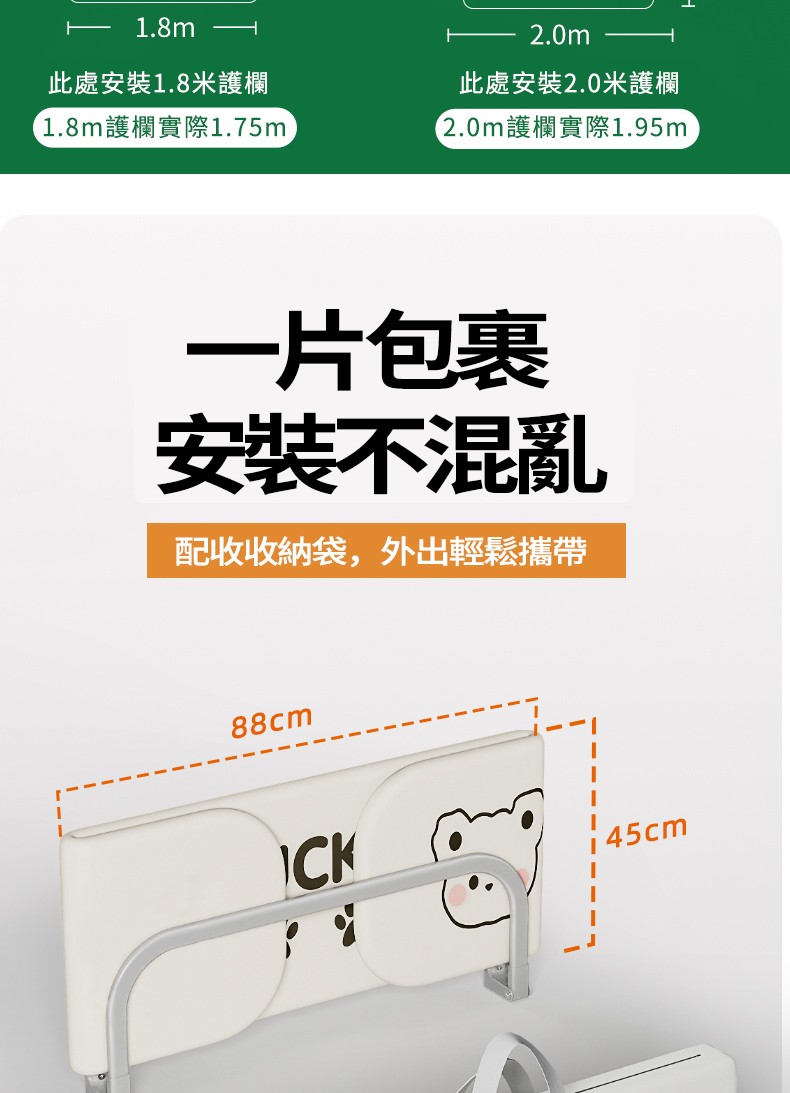 12分鐘前隨時隨地守護寶寶睡眠安全!【多貝嬰】可折疊防摔防護欄,免安裝,打開即用,旅行出遊方便攜帶 - 1.8米-免安裝折疊款