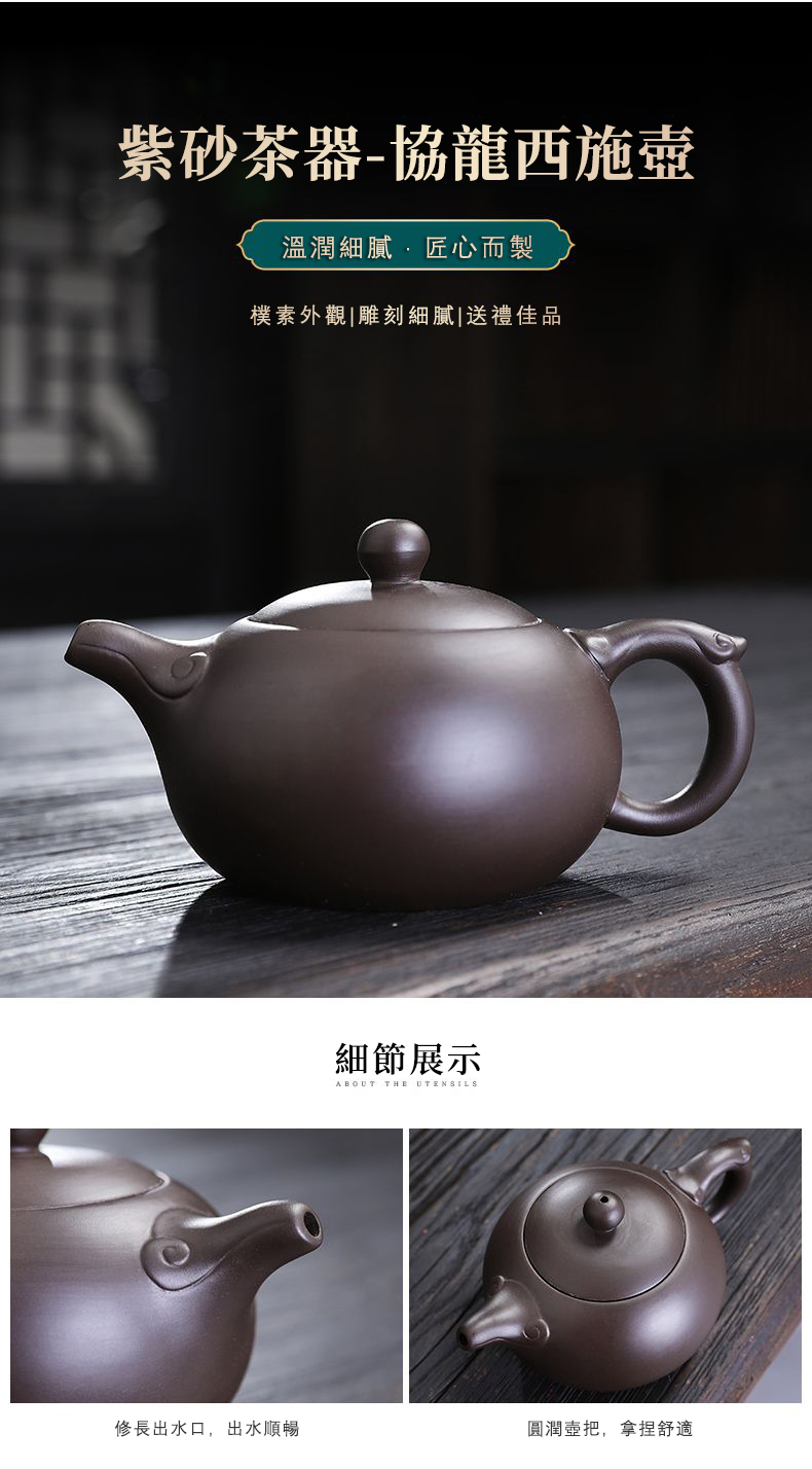 4分鐘前宜興紫砂壺原礦紫泥四方龍尊茶壺,尊貴與典雅的生活儀式,八方新氣藝術佳作 - 紫砂如意西施壺(200ML)--贈兩杯