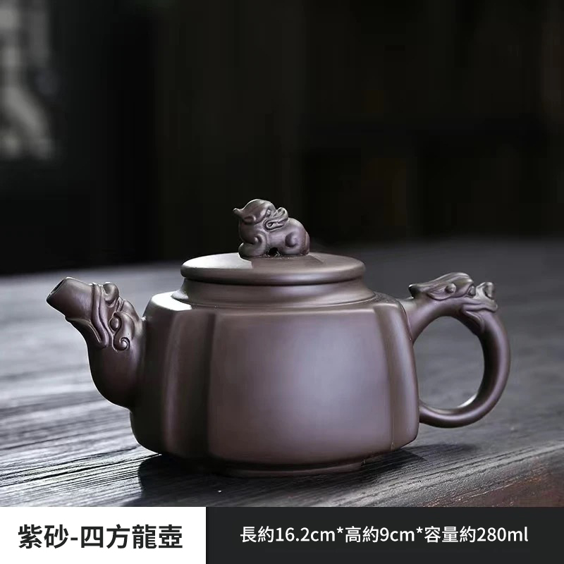 半小時前宜興紫砂壺原礦紫泥四方龍尊茶壺,尊貴與典雅的生活儀式,八方新氣藝術佳作 - 紫砂四方龍壺(280ML)--贈兩杯