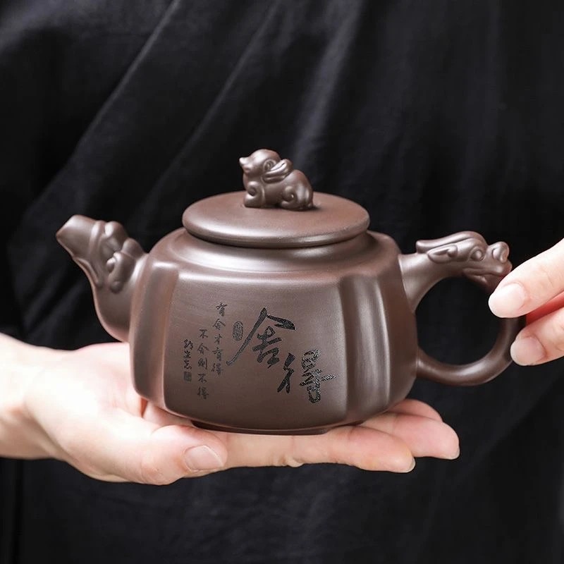15分鐘前宜興紫砂壺原礦紫泥四方龍尊茶壺,尊貴與典雅的生活儀式,八方新氣藝術佳作 - 紫砂西方龍壺-捨得(280ML)--贈兩杯