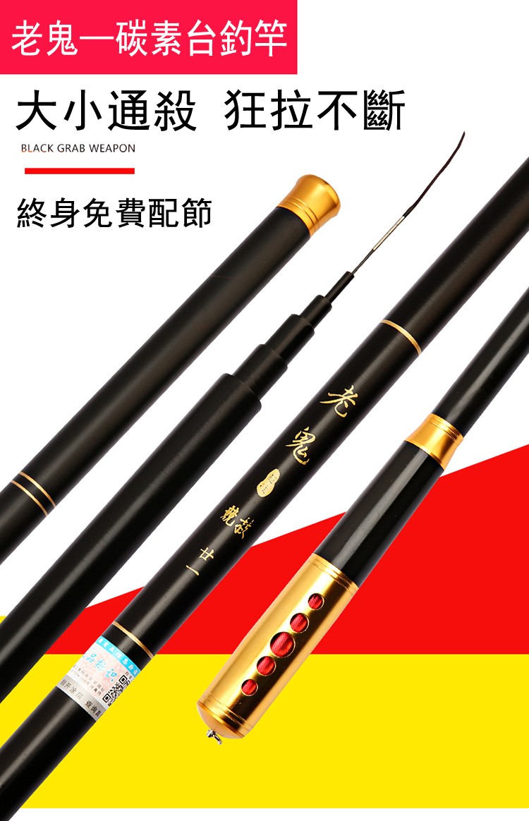 15分鐘前【十大名牌—正品老鬼釣魚竿】手桿超輕超硬28調長節鯉鯽魚竿台釣竿套裝 - (買一送一)18尺(5.4m)+12尺(3.6m)+雙竿梢+大禮包