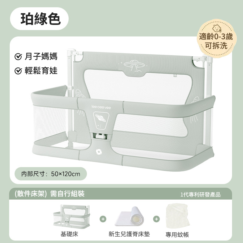 20分鐘前Leeoeevee嬰兒床寶寶床 新生兒多功能小床 便攜式移動床中床 防護欄 - 【月子媽媽推薦款】床+新生兒護脊床墊+專用蚊帳【適齡0-3歲】可拆洗