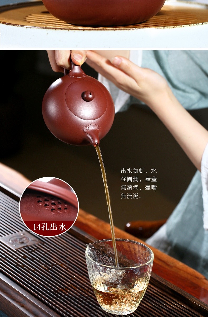 全手工紫砂壺 家藏三十年黑金沙原礦老料 大容量球孔西施壺