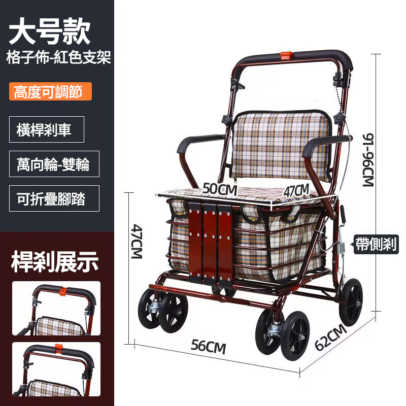 12分鐘前可折疊多功能老人代步購物車 超強承重 大容量收納 各種場景都適用,長輩們購物、散步更輕鬆! - 【大號款】老人代步購物車+帶踏板 NT$4050