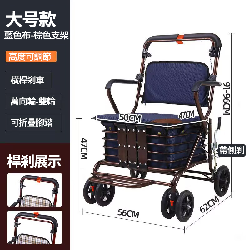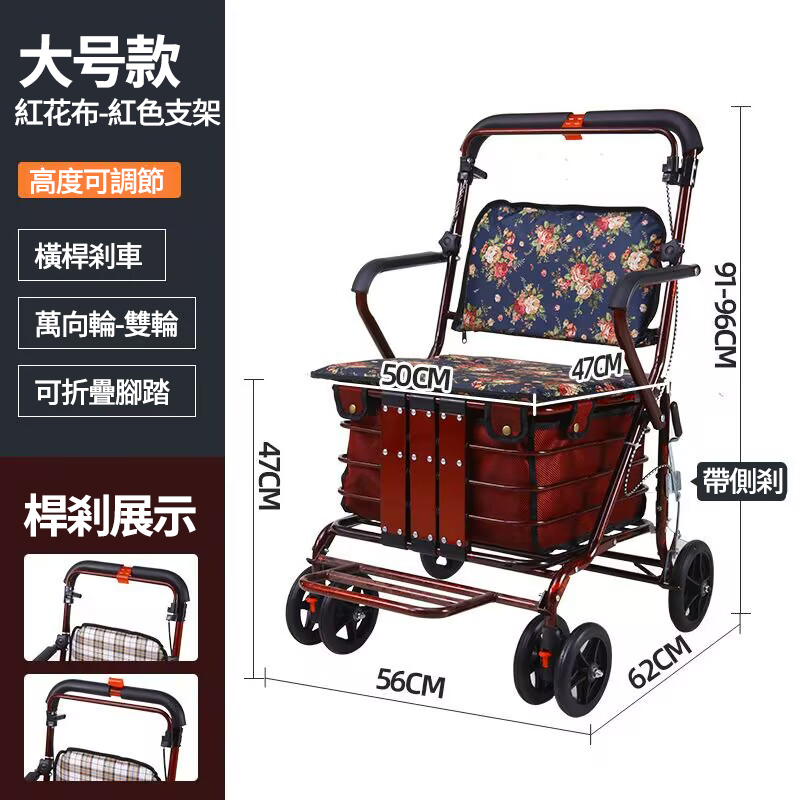 25分鐘前可折疊多功能老人代步購物車 超強承重 大容量收納 各種場景都適用,長輩們購物、散步更輕鬆! - 【大號款】老人代步購物車+帶踏板 NT$4050