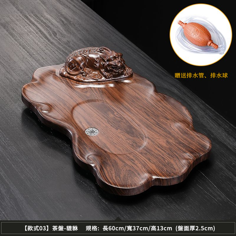 4分鐘前【天然實木】黑檀木雕刻功夫茶盤組|中式茶具套裝|實木泡茶盤 擺設收藏兩用 - 吉祥茶盤60*30cm【送排水管】