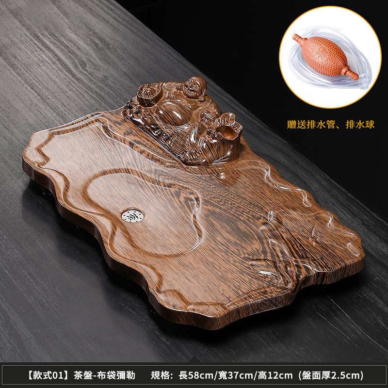 25分鐘前【天然實木】黑檀木雕刻功夫茶盤組|中式茶具套裝|實木泡茶盤 擺設收藏兩用 - 布袋彌勒58*37cm【送排水管】