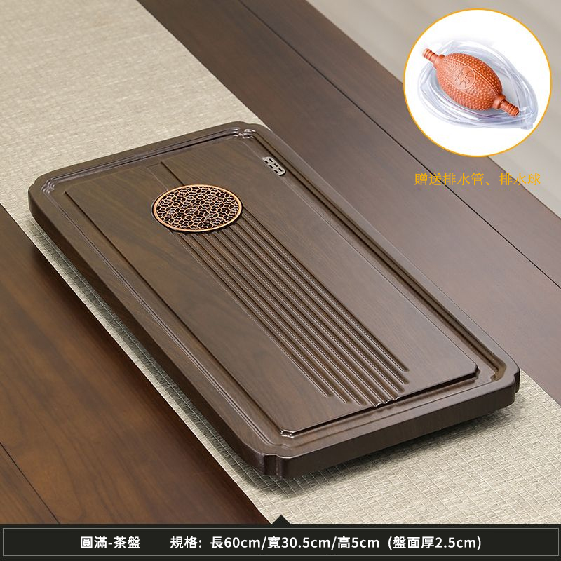 15分鐘前【天然實木】黑檀木雕刻功夫茶盤組|中式茶具套裝|實木泡茶盤 擺設收藏兩用 - 圓滿茶盤60*30cm【送排水管】